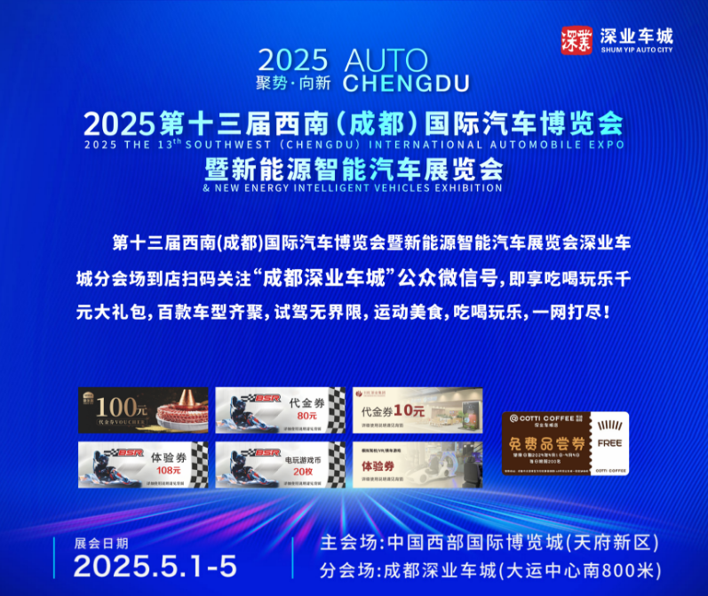 五一假期即将来临,想要购车、看展的朋友们注意啦!第十三届西南(成都)国际汽车博览会暨新能源智能汽车展览会已盛大启幕。值得一提的是,成都深业车城作为分会场,与主会场中国西部国际博览城同期联动,实现一城双展、一票通用,一场汽车爱好者的狂欢派对正式拉开帷幕!